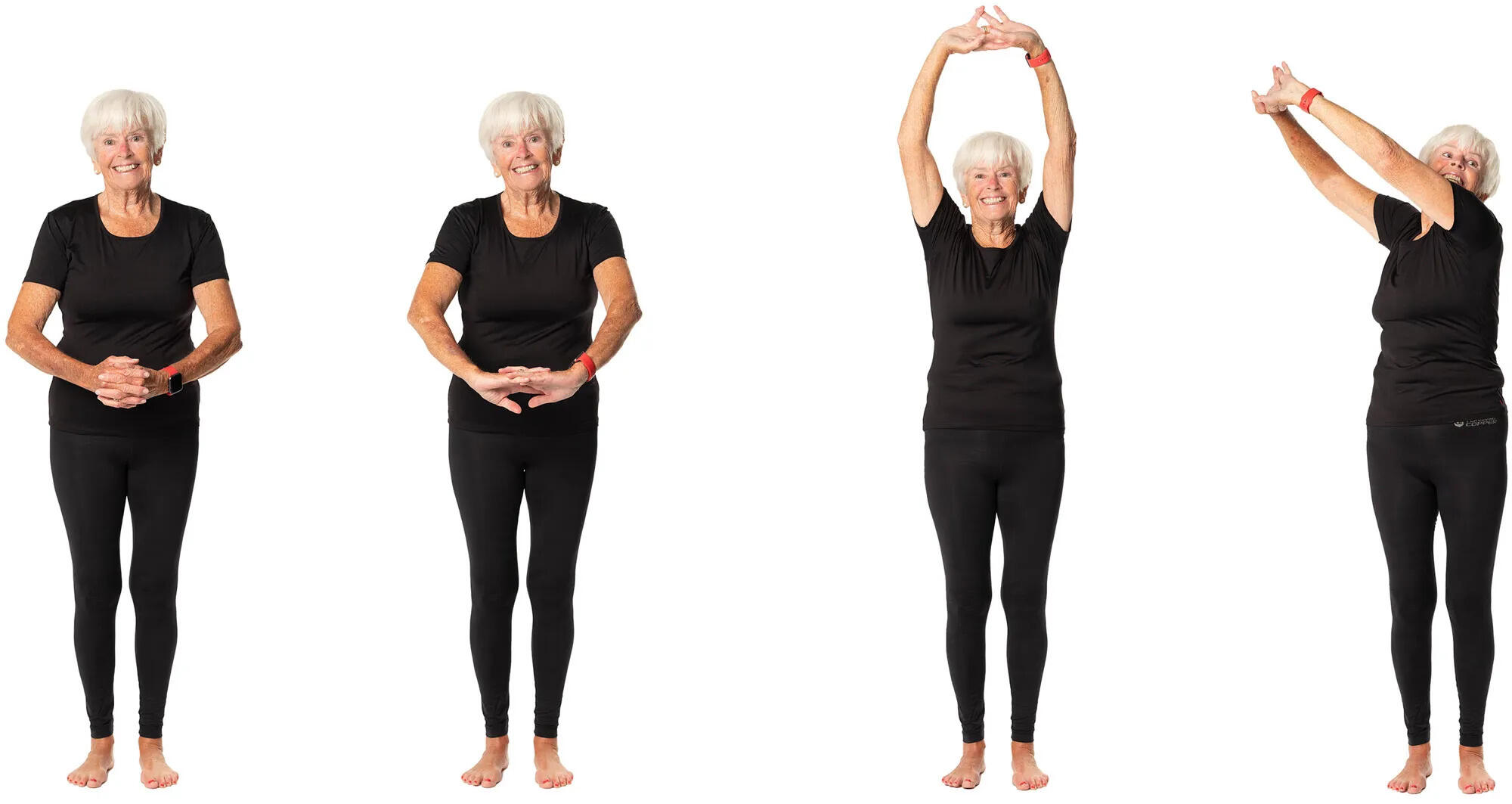 Choose just enough routines and repetitions to meet your goals. Don't try to do all the routines in one session — some days, focus on upper-body flexibility; other days, lower-body or balance.